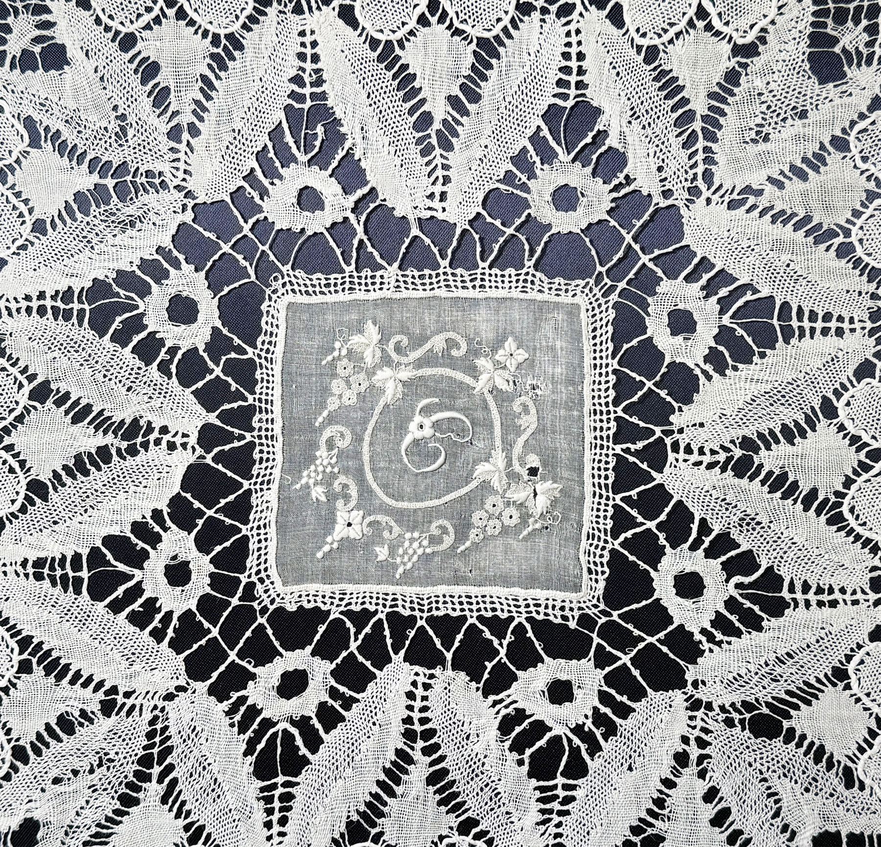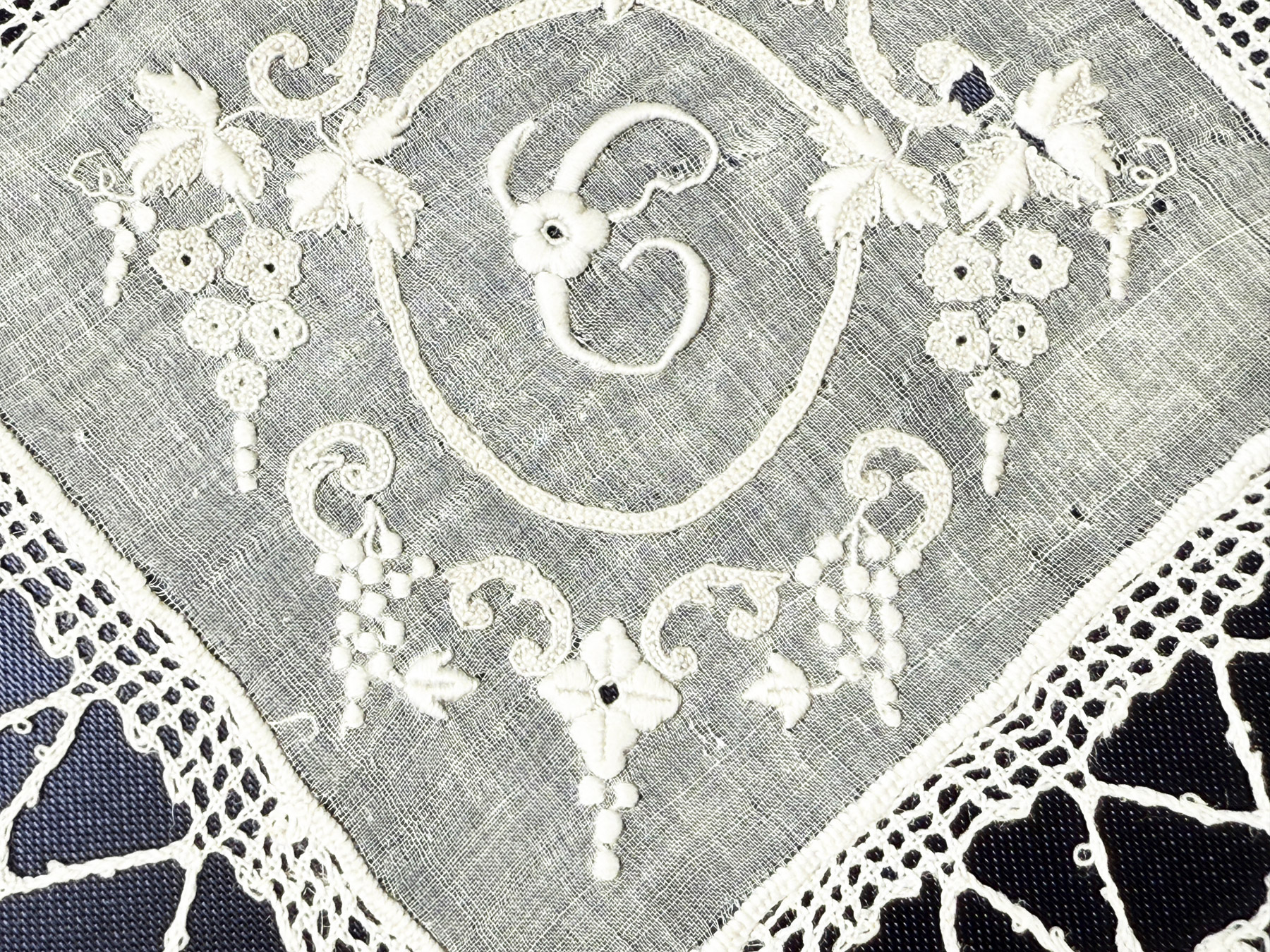 Magnifico pañuelo de Encaje de Bolillos con inicial C