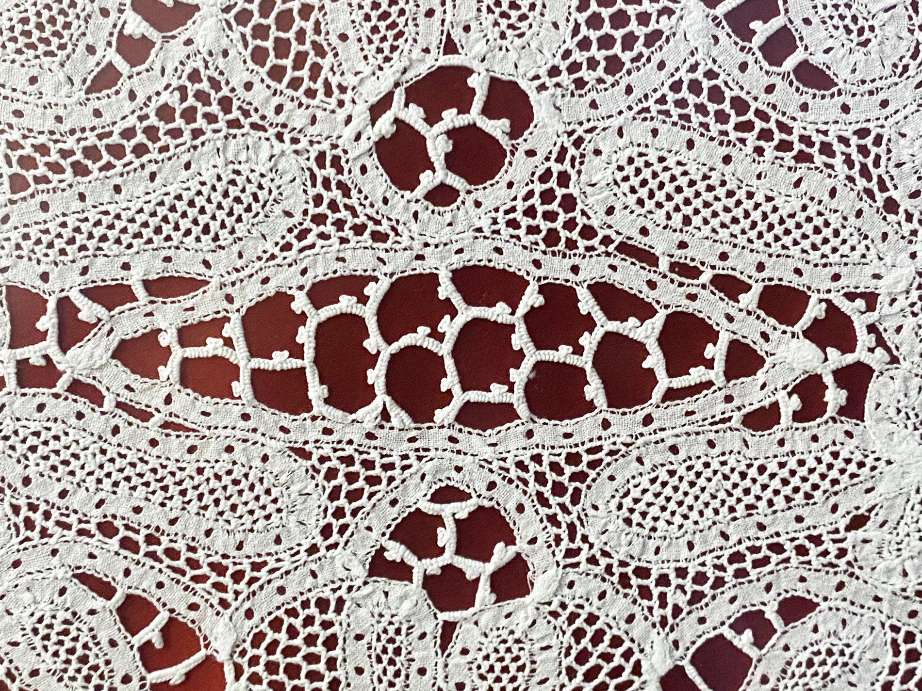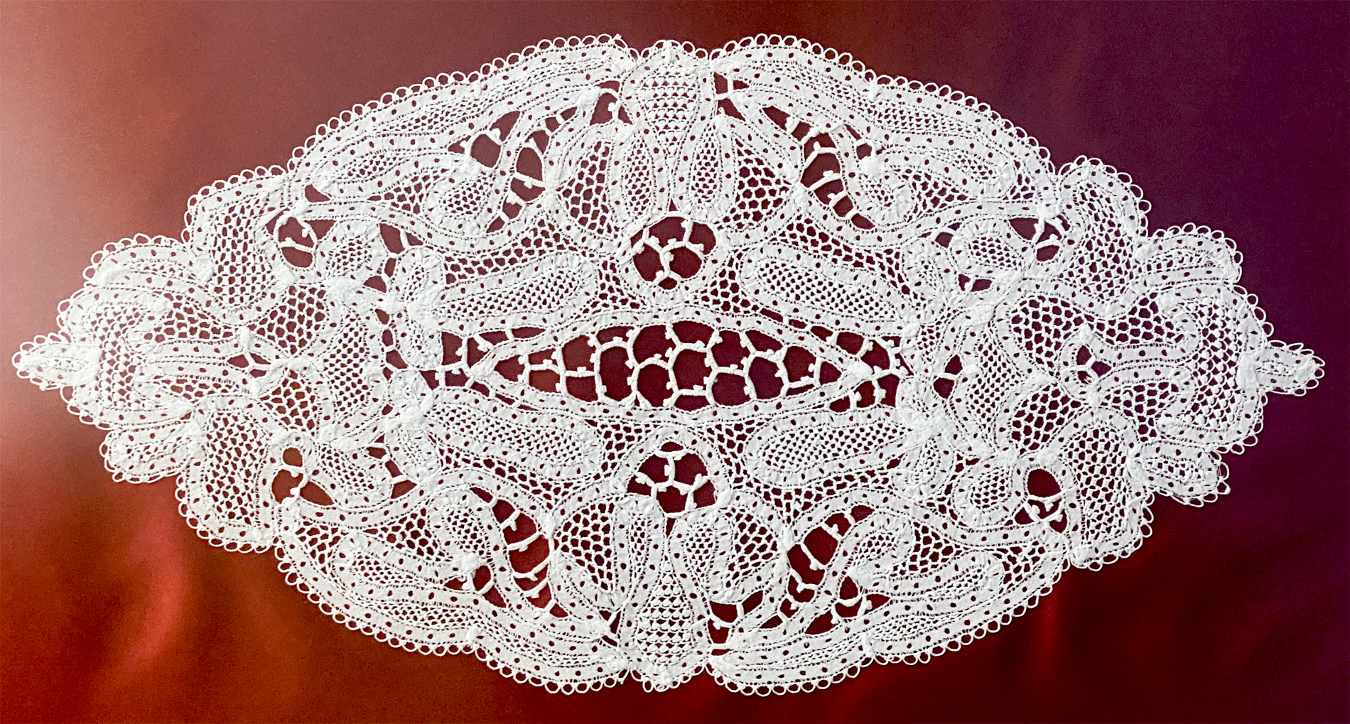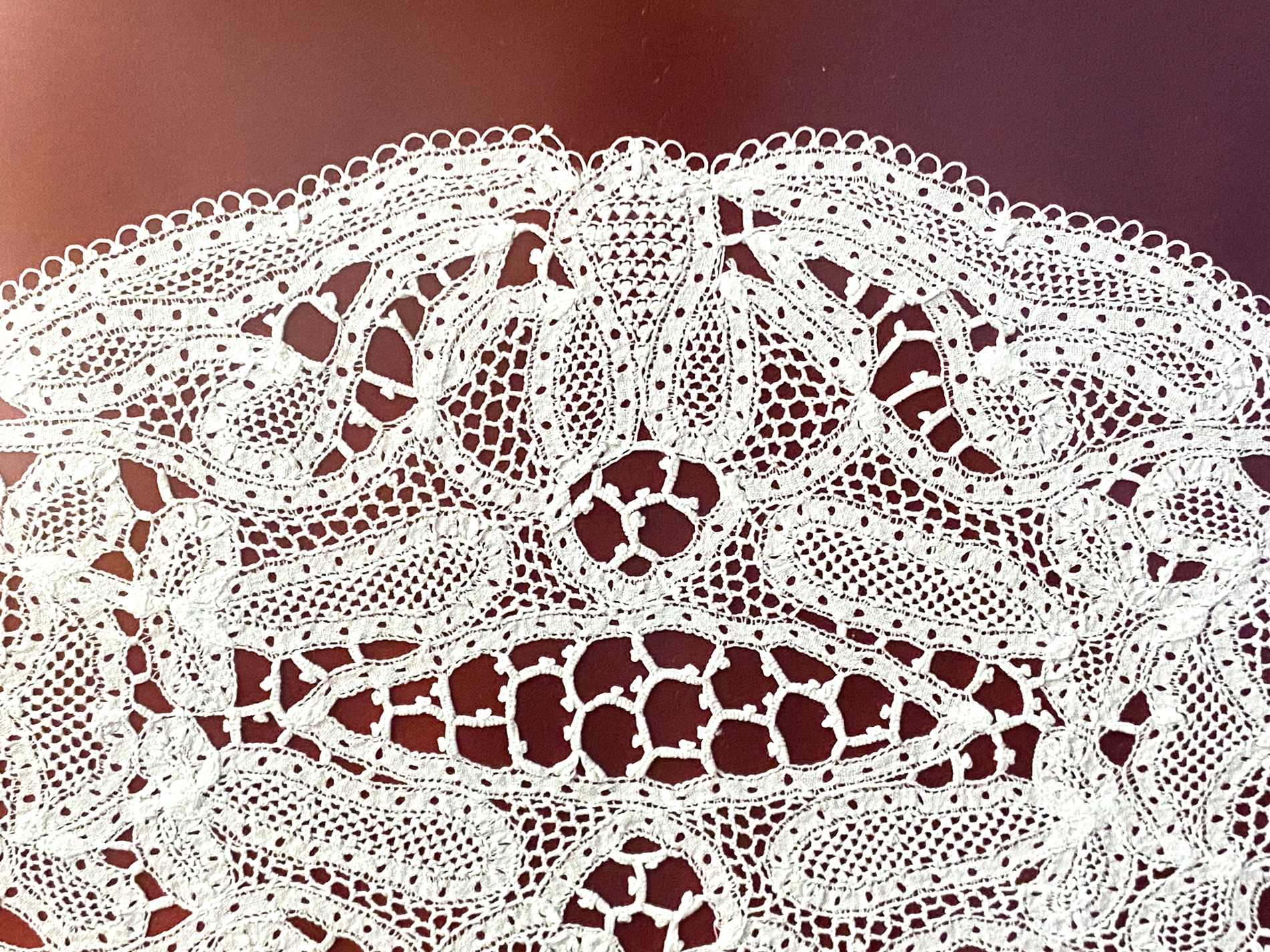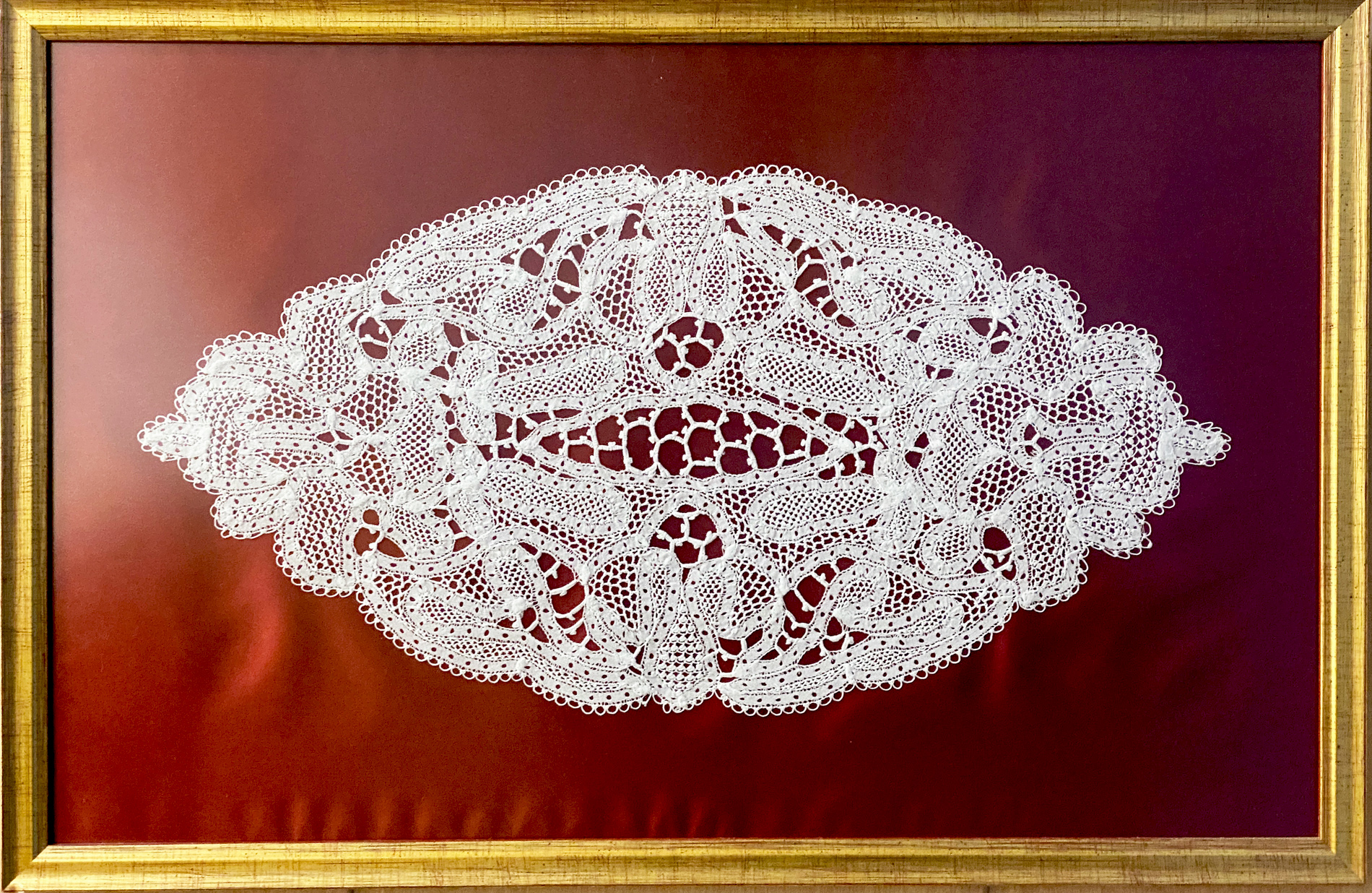 Espectacular pieza de Encaje de Bolillo de Flandes, que evoca los famosos labios de Mae West.